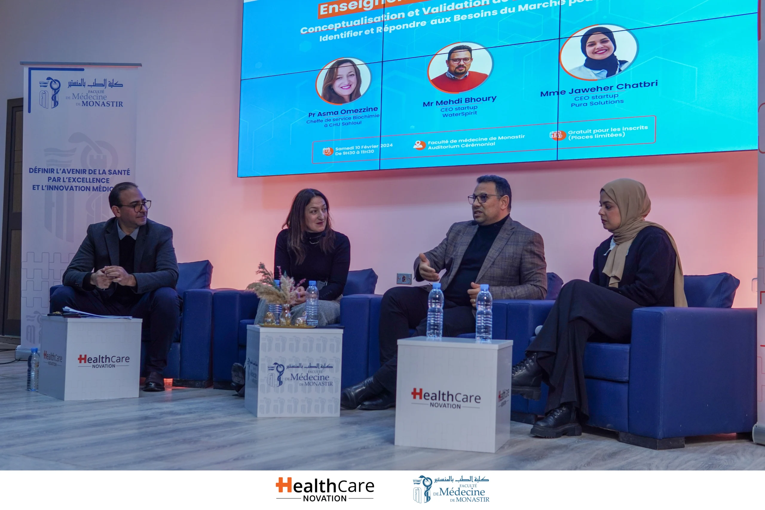 Held on 10 February 2024 in the ceremonial auditorium of the Faculty of Medicine of Monastir (FMM), the session gathered 100+ participants from regional university hospitals and HealthTech actors. Panelists included practitioners and founders sharing firsthand validation journeys.